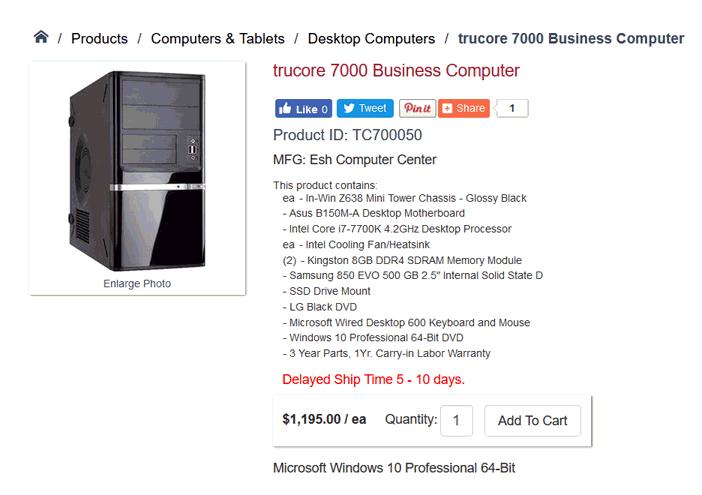 The ecommerce module includes a variety of options for managing and displaying inventory counts on the website. The website can automatically limit purchases to the number of product available, remove out of stock items, and display temporary and seasonal messages.