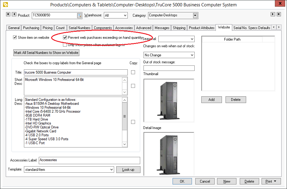 exceeding on hand quantity setting is turned on (See Print Web Purchases Exceeding Available