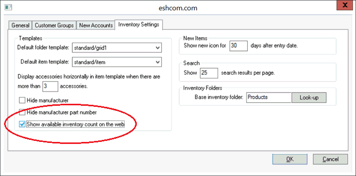 In EBMS, go to Sales > Web > Website > Inventory Settings tab. Enable the Show available inventory count on the web to show the available inventory count to the web customer.
