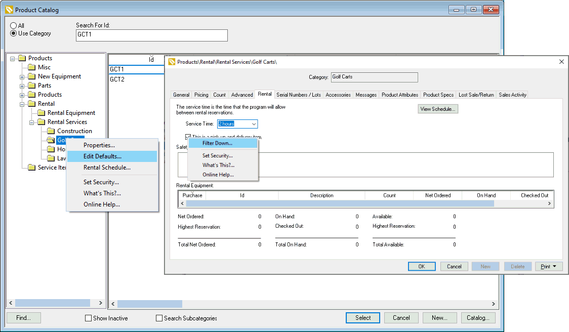 Review [Main] Features > Edit Defaults, Filter Down Data, and Globally Change Data for filter down instructions.