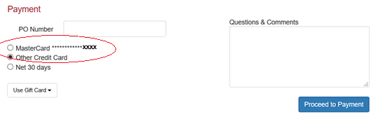The Credit Card option should be enabled to facilitate credit card payments within the e-commerce site. The types of credit cards available on the e-commerce site are configured within EBMS and PAYware settings. Review the Processing Orders > Processing Credit Cards section for more details on configuring and processing credit cards.