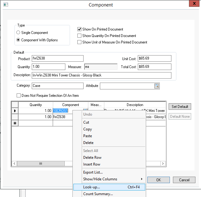 Review the Inventory > Components and Accessories > Optional Component Pricing within the inventory manual for an overview on component pricing details.