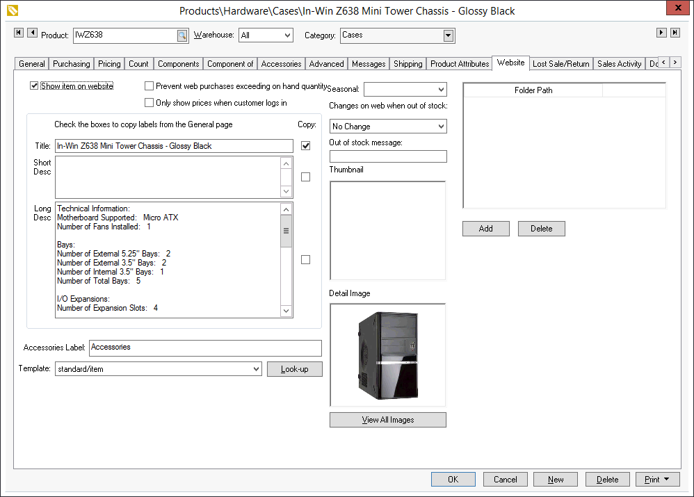Review the Creating Website Content > Listing Products section for more details on the settings within the Website tab.