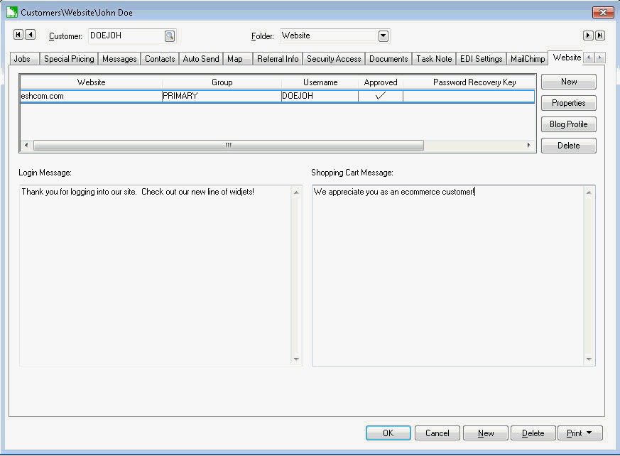 tab of each user's customer account. Review the Customer