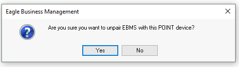 At times an EBMS user may need to unpair a Point device with EBMS software. This may be needed in situations where the limited number of ten pairings have been reached for a specific Point device.