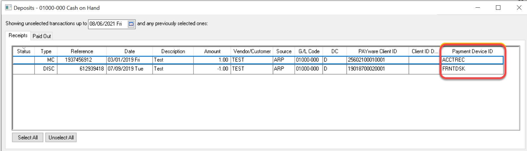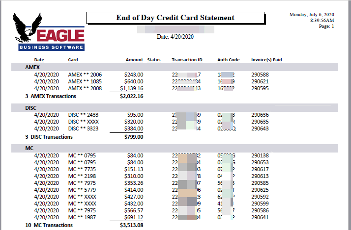 Select the transactions that are listed on the payment card settlement report generated by the merchant service provider. Note the Payment Device ID to separate transactions by payment processing device.
