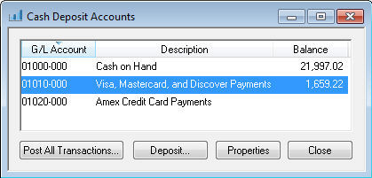 Click on the Deposit / No Print to complete the deposit without printing a deposit slip. Review the Customer Payments > Cash Accounts, Deposits, and Reconciling Cash section for more details on deposits.