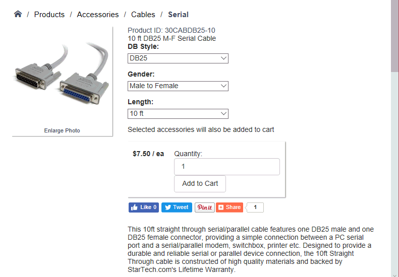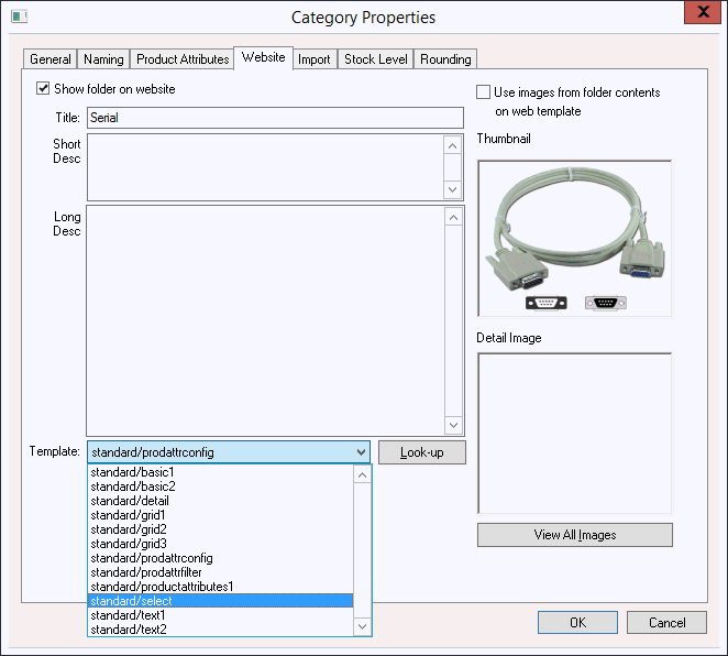 standard/productattributes2: This template appears the same was as standard/productattributes1 but the functionality is quite different. This template will list ALL options for a specific attribute such as length. This template should be used with caution since selecting a specific option (such as Length in the example above) could change an option above it (change Type or Connectors options). This template will appear the same as the standard/productattributes1 template if there is only one attribute label.