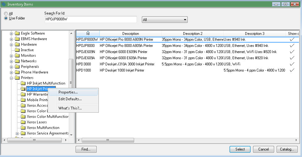 Setup the inventory defaults. The user can save a substantial amount of entry time if the inventory defaults are properly set up before items are created, since many of the items within the folder group contain the same information. Review the Product Catalog > Changing Inventory Defaults section of the inventory documentation for more details.