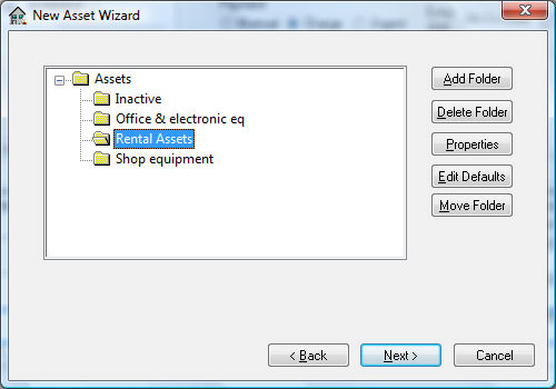 Select the asset folder that contains rental equipment and click