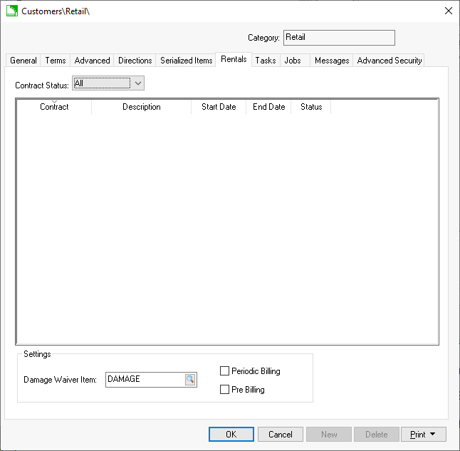 Enable the Pre-Billing option if this customer must pay for the rental when it is checked out rather than when the rental item is returned. Review the Rental Contracts > Billing a Rental section for more details on pre-billing options.