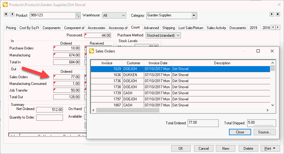 Double click on the Sales Orders Ordered view a list of sales orders. Double-click on the desired sales order to open the document.