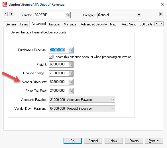 the Vendor Discounts financial account.