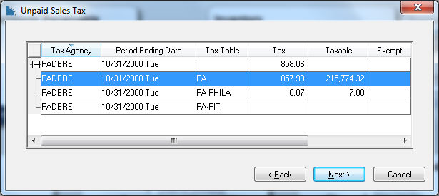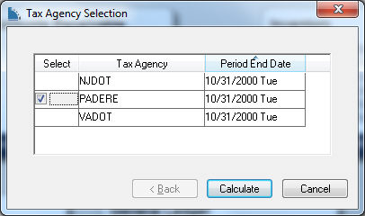 Select each Tax Agency that is to be paid by clicking on the Select column.