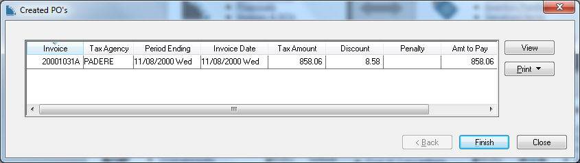 Click Finish to process the payment expense invoice. Review [Financials] Vendor Payments > Selecting Invoices to be Paid for steps to generate the payment.