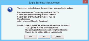 Note that this utility will overwrite any manual address changes made to any of the selected documents. Click on the following address change options:
