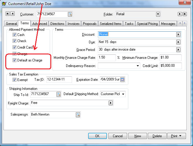 tab of the customer to view or set the Default
