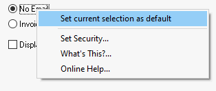 Note: Any dialog defaults can be set by right clicking on the