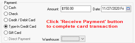 Enter the Date the customer payment was made. This date defaults to the present date but can be changed by clicking on the down arrow button and selecting a new date from the calendar.
