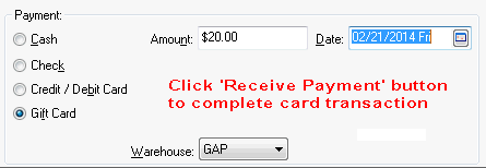 Using Gift Cards section for details on the payment card entry