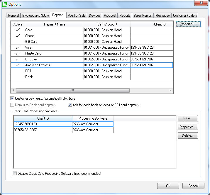 Accounts for each payment type instead of a single Cash Account.