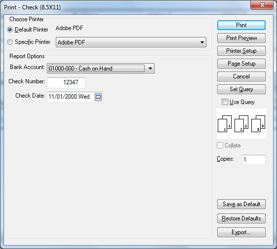 Select Cash and set the proper Cash Account or petty cash account that is used to pay the cash.