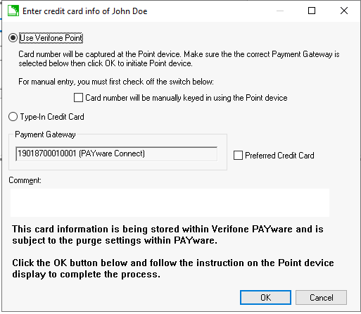 Select the Use Verifone Point option if the user can swipe the credit card using a Verifone hardware device.