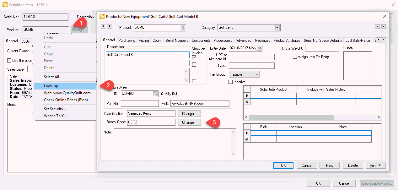 Serialized equipment that contains a barcode of the serial number or VIN number can be associated to a rental contract by scanning the serial number barcode. This documentation will address the scanning options including product and serialized equipment within a rental contact.