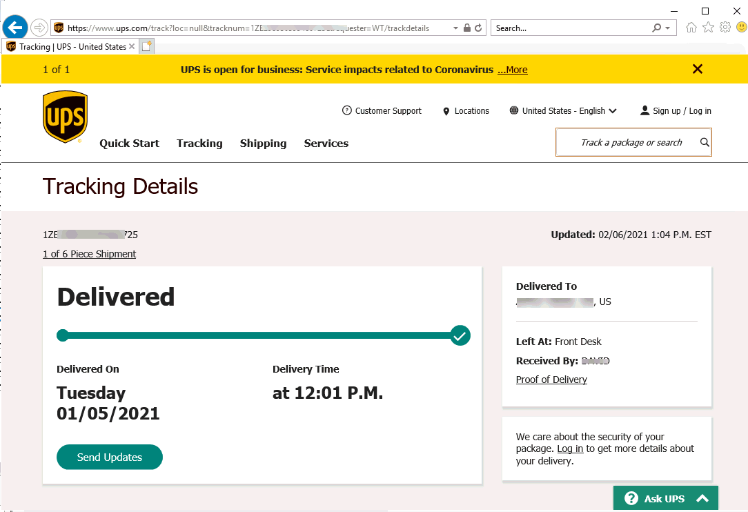 Highlight a shipment and click Track to open a tracking page for the package.