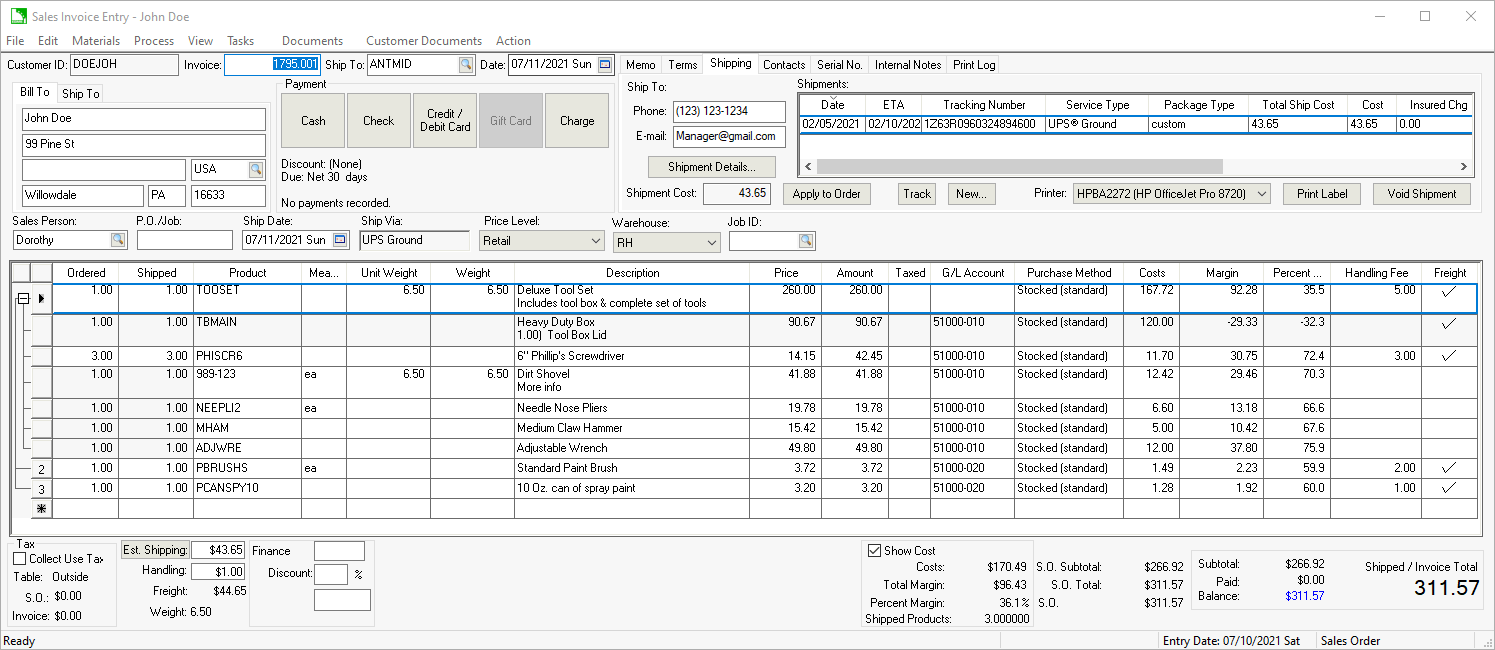 Many of the processes in this section are enhanced by subscribing to the ShipEngine shipping service. The ShipEngine services that can be used within EBMS are rate shopping, address validation, printing labels, and package tracking. Review Integrating ShipEngine for setup instructions.