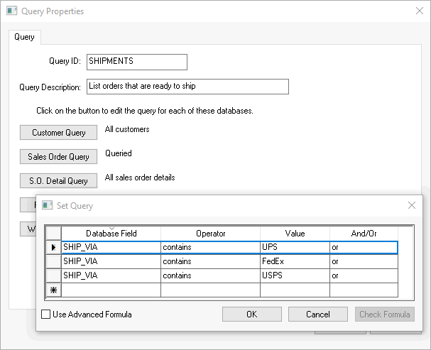 Create a batch processing query to list a batch of shipments. This may be multiple queries to separate shipments that are being shipped via common carrier, express shippers, or other types of shippers.