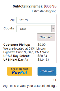 Quickly get an approximate shipping cost by selecting Estimate Shipping beneath the subtotal. Enter the Zip and Country and select Calculate. Review the Shipping Options section for details on shipping options.