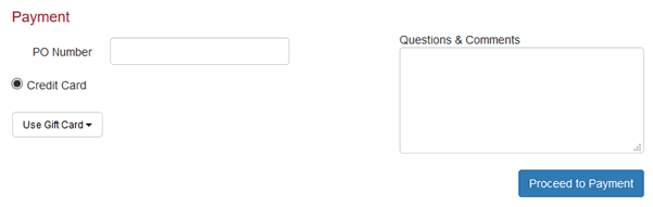 The user can select from the billing options available to them. Normally the only payment option for a user that does not log into the website is a credit card payment option as shown below: