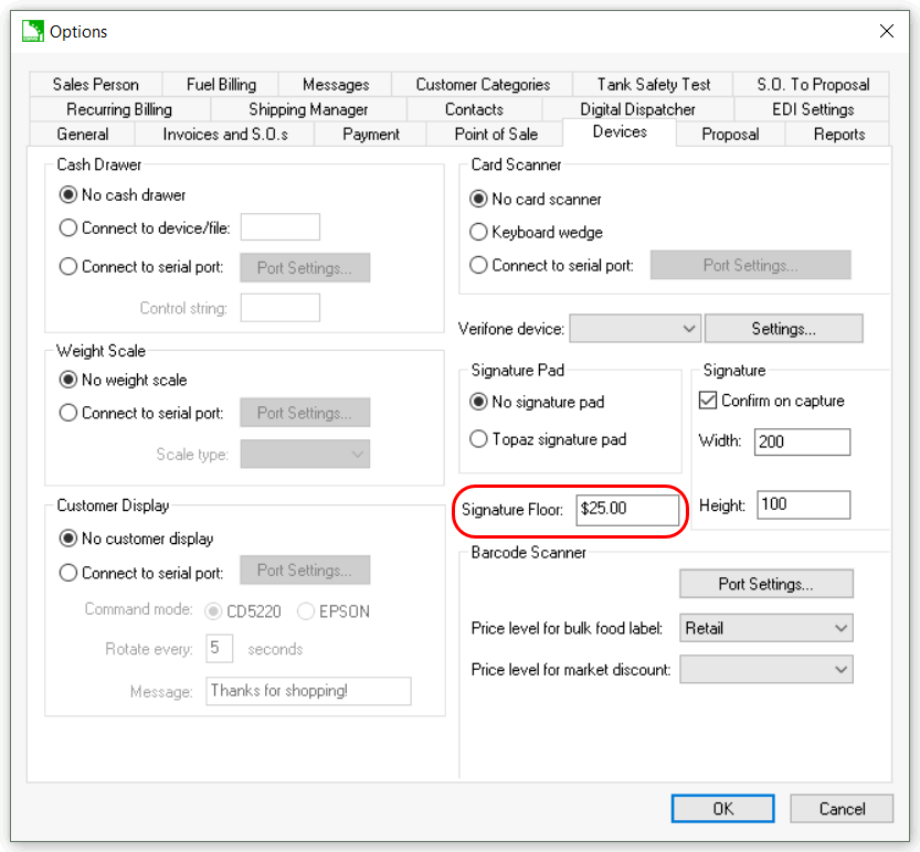 Verifone Point - The Signature Floor must be set within the device itself. Contact technical support to configure the Point software within the device.