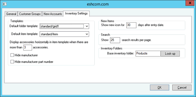 The maximum number of results listed is set in the website options. Select the website from the Sales > Web menu > Inventory Settings tab to view or change the following options: