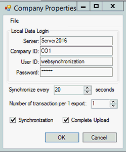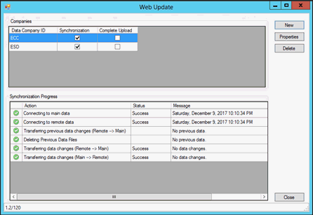 To setup the eCommerce website the user will need to enter the sync properties. Select New to setup a new company or select a company and then select the Properties button.