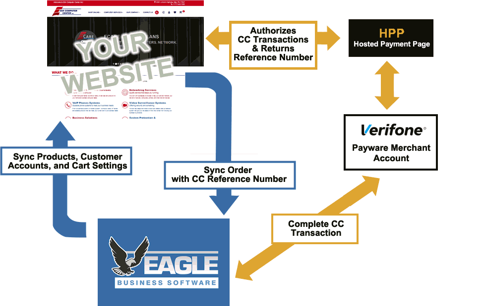 The sync tool uploads inventory item information, customer account data, shipping settings, and payment options. Review the following sections for more details on entering this information within EBMS:
