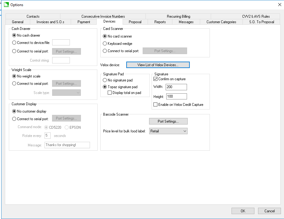 Click View List of Velox Devices button to open the Velox Devices Setup dialog.