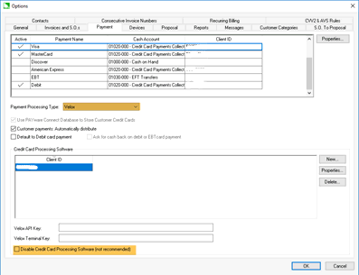 Verify that the Disable Credit Card Processing Software is disabled (not checked).