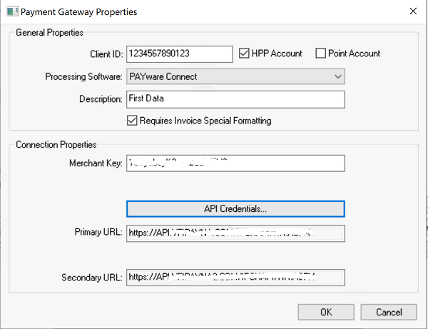 The Primary URL and Secondary URL are populated by the system. Click OK to save the payment gateway properties.