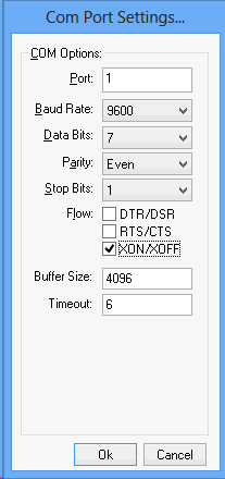 Select the Connect to Serial Port option and configure the serial port settings for the specific scale as shown below: