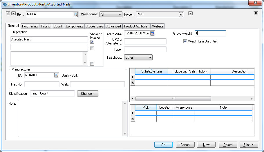 Enter value of one into the Gross Weight entry as shown above if the unit of measure equals the scale's unit of measure. Because this item s sold by the pound the gross weight will always be a multiplier of one. Review the Freight and Shipping Charges > Calculating Total Weight section for more details on the Gross Weight option.