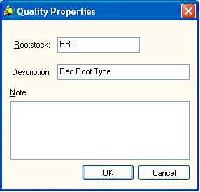 The Rootstock ID should be kept short similar to the variety ID. Enter a plant type or rootstock Description and Note and click on the OK button.