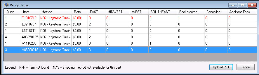 1. Click Upload P.O. to communicate purchase order to eKeystone. The following results dialog will open when the upload is completed: