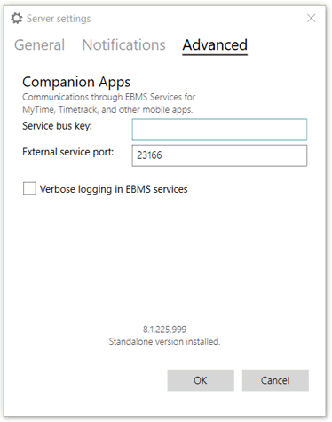 Keep the Verbose logging in EBMS services option disabled unless logging is required for debugging purposes. Enabling this option may reduce the performance of the EBMS Server Manager.