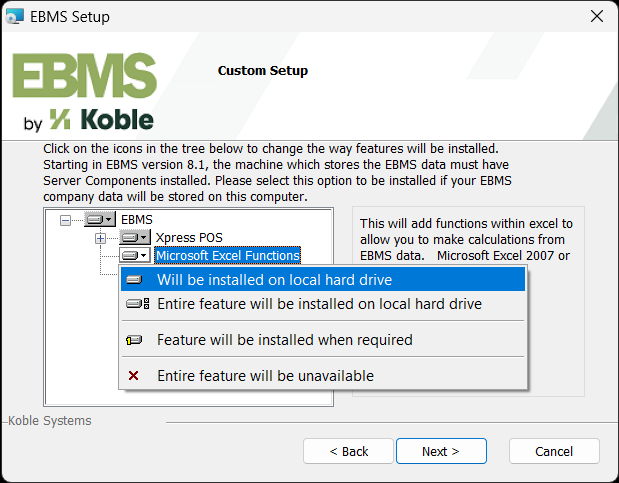 Click on individual features that need to be installed on this workstation. Review Server Manager > Optional Modules for instructions to add features to the license and server.