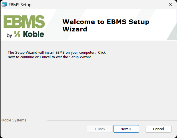 The EBMS program will need to be installed on all the workstation computers. Review Getting Started > System Requirements to review the hardware and OS requirements for a workstation. Complete the following steps to install EBMS on a client workstation: