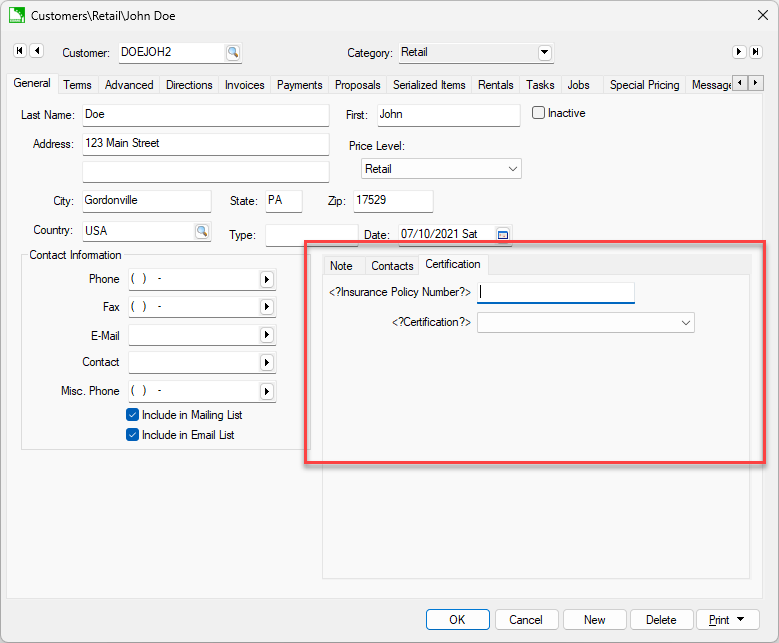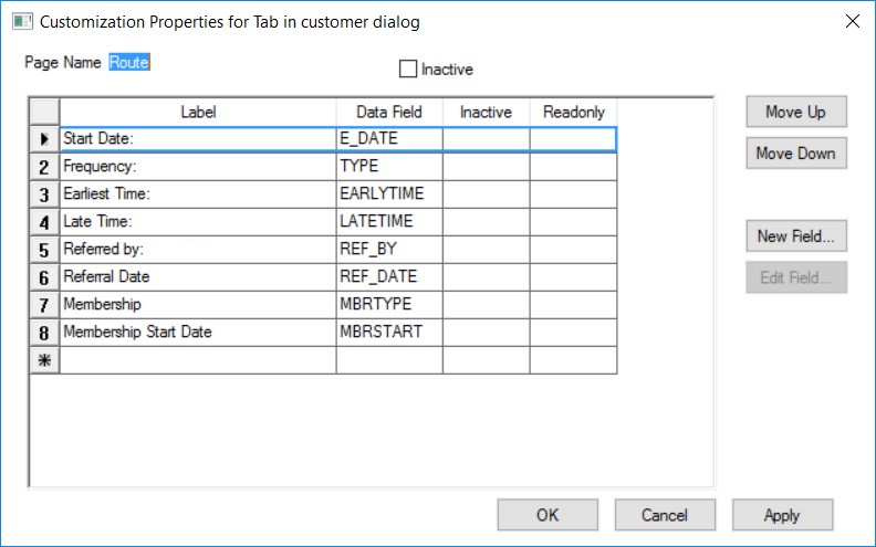 Refer to the beginning of this section for instructions to configure this custom tab (Page Name) within the Customer dialog.