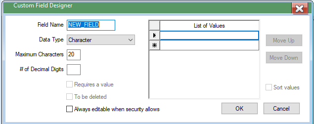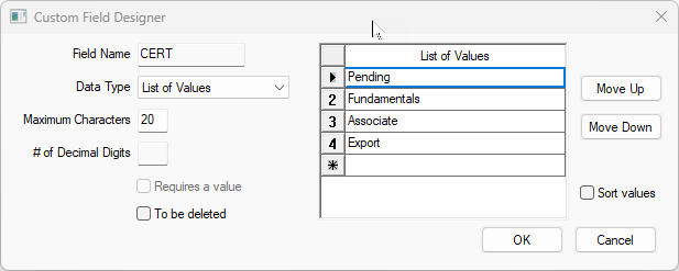 Enable Sort Values to sort the list of values.
