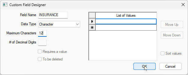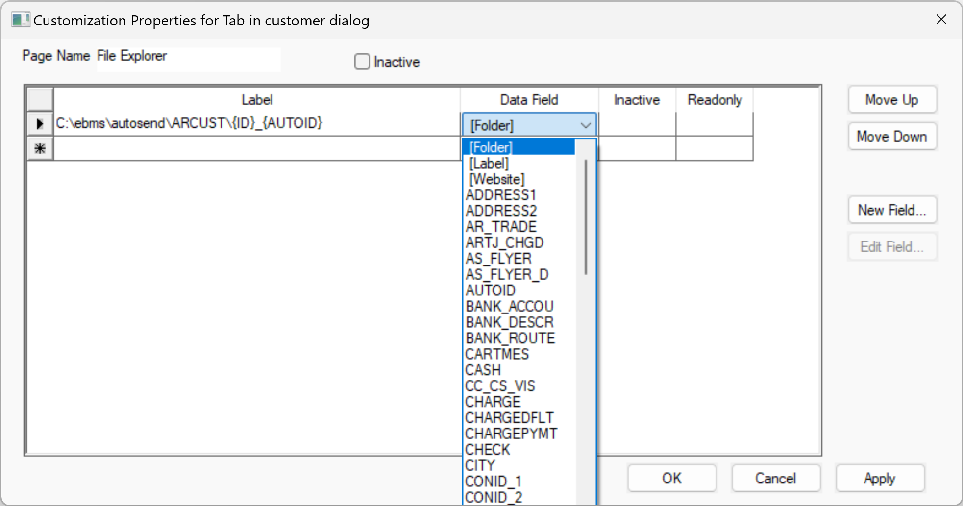Select the existing Data Field. Click New Field to add a new field to the table. Review EBMS Tables and Fields for instructions to locate the file and field names. Review the Create New Fields section below for field details.